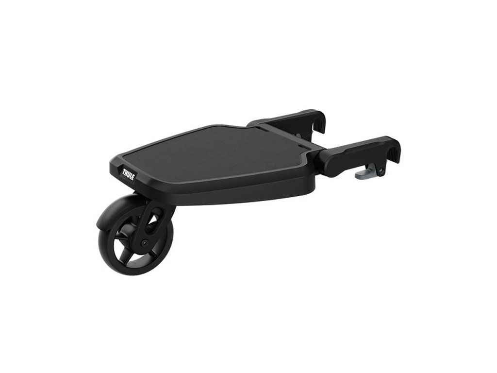 Rider Board Thule Rider Board je navrhnutý tak, aby bol namontovaný na zadnú nápravu vášho kočíka Thule a umožnil tak staršiemu dieťaťu jazdiť na zadnej strane vášho kočíka.Pripevnenie Thule Rider Board na váš kočík Thule sa vykonáva najprv zatiahnutím parkovacej brzdy. Rider Board je potom pripevnený k zadnej náprave, po správnej inštalácii by ste mali počuť cvaknutie. Pred prvou inštaláciou odporúčame starostlivo preštudovať pokyny. Funkcia: - Veľká a stabilná doska pre pohodlnú jazdu - Jednoduché pripevnenie ku kočíku - Elastická šnúra pomáha ľahko sa zložiť a preč, keď sa nepoužíva - Veľké 5" koleso bez defektu pre hladkú jazdu - Trecia páska na hornej strane dosky pre protišmykové vlastnosti - Kompatibilný s Thule Sleek, Thule Spring a Thule ShineDodatočné parametre