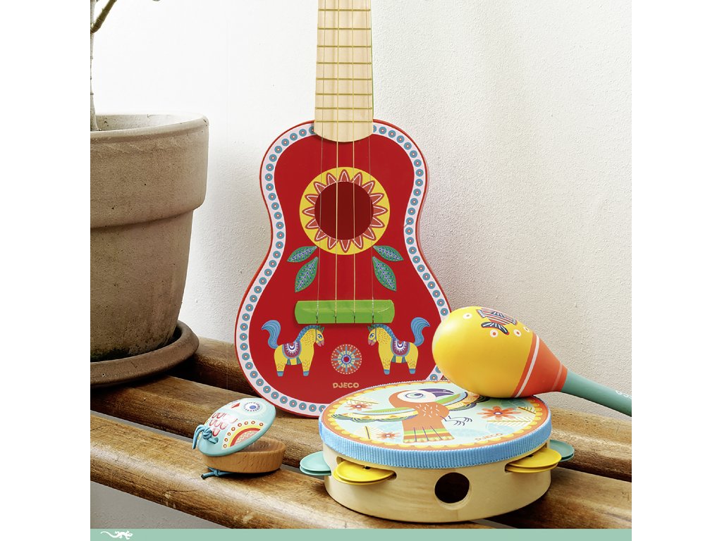 Ukulele Animambo Prvý strunový nástroj: 4 strún, ktoré môžeš brnkať ako „naozaj“Ukulele Animambo je detský hudobný nástroj v dizajne Animambo. Má 4 strún a veľkosť prispôsobenú detským rukám, takže sa na ňom dá pohodlne hrať doma aj na cestách.Deti si prirodzene skúšajú rytmus, brnkanie aj prvé jednoduché melódie – a pritom rozvíjajú koordináciu a trpezlivosť.Rýchly prehľad odporúčaný vek: od 3 rokov rozvíja: hudobné cítenie, rytmus, koordináciu oko–ruka, jemnú motoriku v balení: 1× hudobný nástrojPrečo si to deti zamilujú detská veľkosť – ľahšie držanie a pohodlné brnkanie struny vydávajú reálny zvuk, ktorý motivuje hrať ďalej podporuje pravidelný tréning a tvorivé „muzicírovanie“ krásny dizajn – skvelý darček pre malých hudobníkovObsah balenia 1× ukuleleTechnické parametre materiál: drevo, kov, plast počet strún: 4 rozmery: 53 × 17 × 5 cmDodatočné parametre