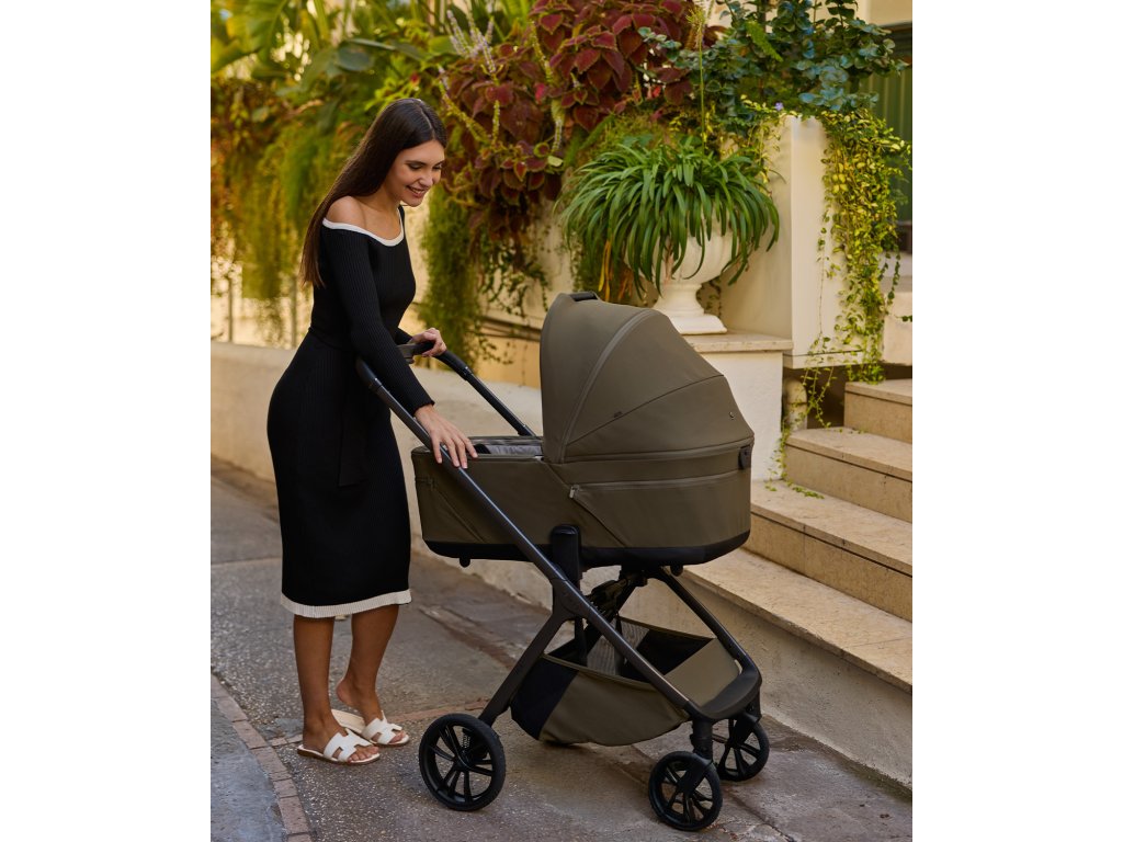 Spojenie pohodlia a štýlu, ideálne pre aktívnych rodičov. Ľahký, priestranný a funkčný, poskytuje voľnosť pohybu aj maximálny komfort na prechádzkach či výletoch. Mnoho praktických vreciek pomáha udržať veci v poriadku a elegantný dizajn ladí s kočíkom.