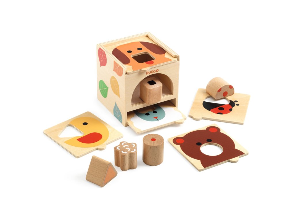 Vkladačka Posuvná Drevený posuvný triediaci box Originálny triediaci drevený box pre deti od 18 mesiacov vyrobený z FSC® dreva. Rodič vyberie dosku zvieratka s geometrickým otvorom (štvroec, kruh, polkruh, trojuholník alebo hviezdička) a zasunie ho navrh krabičky. Dieťa sa potom hrá vkladaním toho správneho z 5 tvarov pasujúceho do otvoru.Z certifikovaného dreva pre bezpečnú hru Výhody:• spodok krabičky je vystlaný plsťou pre menší hluk pri páde kusov• spodok krabičky je naklonený, takže kúsky sa dajú ľahko znova vytiahnuť• všetko sa zmestí do krabičky• umožňuje vášmu dieťaťu sústrediť sa na 1 tvar naraz• drevo s ekologickým certifikátom FSC®Obsah:• 1 box/krabička, 5 dosiek s otvormi a 5 drevených dielikovDodatočné parametre