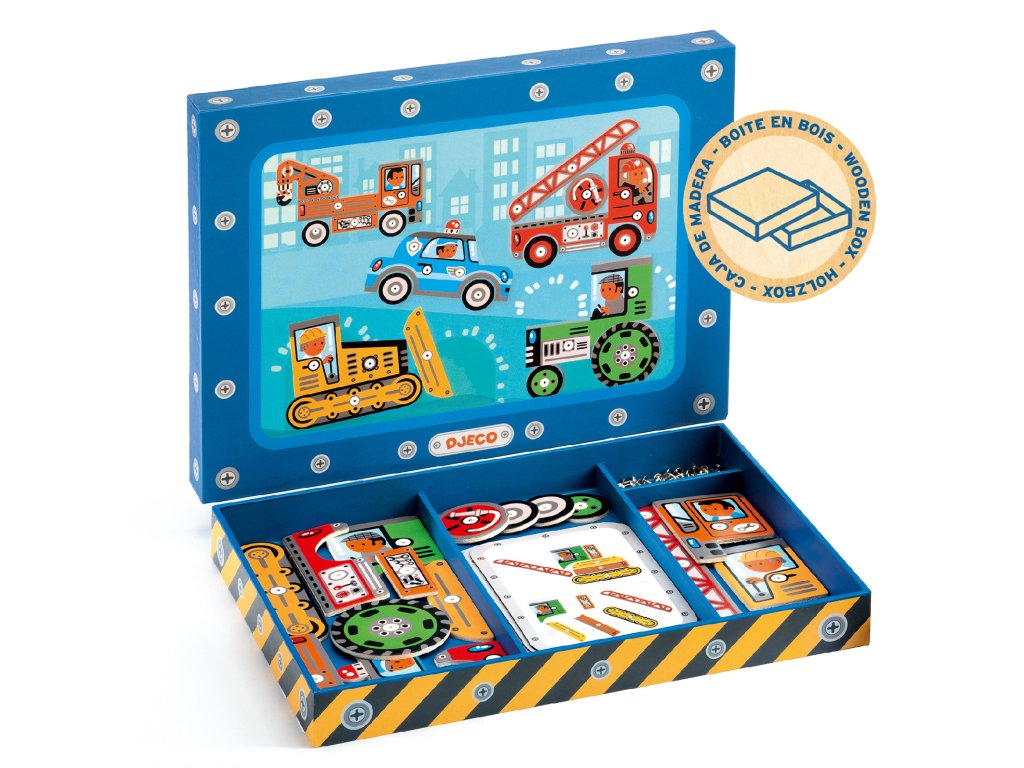 Zatĺkačka dopravné prostriedky Zatĺkaj a skladaj: tvorivé obrázky na korkovej doskeZatĺkačka dopravné prostriedky je drevená zatĺkačka, kde deti ukladajú dieliky na korkovú dosku a jemne ich pripevnia klinčekmi. Podľa predlôh vytvoria autá, nákladiaky a ďalšie vozidlá – alebo si vymyslia vlastné.Rýchly prehľad odporúčaný vek: od 4 rokov téma: tvorenie vozidiel zatĺkaním dielikov na korkovú dosku rozvíja: jemnú motoriku, koordináciu, predstavivosť a trpezlivosťPrečo si ho deti zamilujú prémiové materiály: drevené dieliky, korková doska a kladivko praktická drevená krabička s priehradkami na uloženie podporuje jemnú motoriku, koordináciu a tvorivosť možnosť skladať podľa predlôh aj úplne voľneAko sa hrá Vyberte si predlohu alebo vlastný nápad a rozložte dieliky. Umiestnite dieliky na korkovú dosku a prichyťte ich klinčekmi. Hotový obrázok si prezrite, potom klinčeky opatrne vyberte a skúste nový návrh.Obsah balenia 24× ilustrovaný drevený dielik s otvormi 40× klinček 1× korková doska 1× drevené kladivko 5× obojstranná predloha 1× drevená krabička na uloženieTechnické parametre materiál: drevo, korok, kov rozmer balenia: cca 30 × 22,5 × 3,5 cmDodatočné parametre
