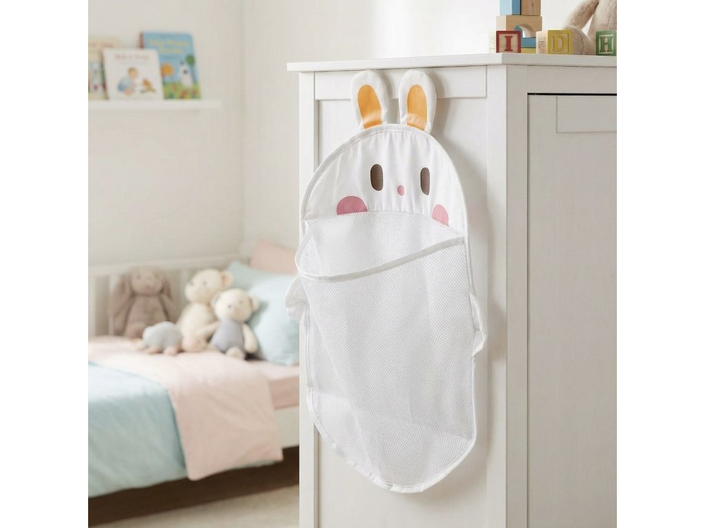 Závesný organizér ZajačikPraktický organizér do detskej izbyZávesný organizér Zajačik pomáha udržať detskú izbu prehľadnú a veselú. Na prednej strane má jedno priestranné vrecko, ideálne na hračky, pastelky alebo drobné poklady. Hravý dizajn v tvare zajačika s veselým výrazom a pestrými farbami priťahuje pozornosť detí a motivuje ich k poriadku. Organizér sa jednoducho zavesí na stenu, dvere alebo bok skrine, šetrí miesto a je vyrobený z odolného materiálu vhodného pre deti.Dodatočné parametre