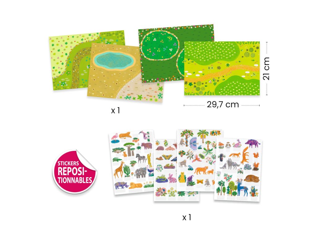 Zdvíhacie odnímateľné samolepky Zvieratá Vytvor 3D scény: nalep, zdvihni a vymýšľaj príbehyZdvíhacie odnímateľné samolepky Zvieratá sú kreatívna aktivita, v ktorej deti dotvárajú 4 veľké ilustrované scény pomocou zdvíhacích (lift-up) samolepiek. Samolepky sa nalepia na obrázok a potom sa dajú jednu po druhej zdvihnúť – vďaka tomu vzniká efektný 3D „preklápací“ efekt a deti môžu odhaľovať, čo sa pod zvieratkami a doplnkami skrýva.Samolepky sú opakovane použiteľné, takže deti môžu scény stále meniť, skúšať nové kombinácie a vymýšľať nové situácie. Aktivita prirodzene rozvíja jemnú motoriku, pozornosť a rozprávanie príbehov – ideálna tichá tvorivá hra na doma aj na cesty.Obsah balenia 4 veľké ilustrované scény na dotvorenie 80 zdvíhacích odnímateľných samolepiekDodatočné parametre